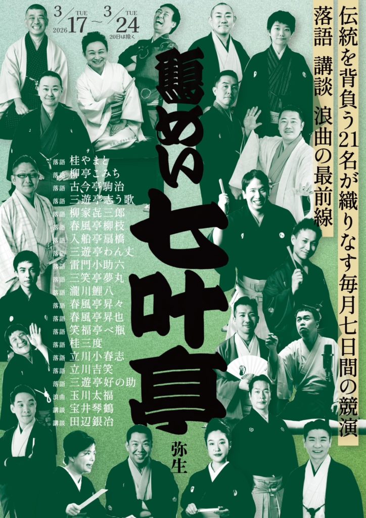2026.03.22 Sun その他 鶴めい七叶亭 日程 2026年03月22日[日] 9時30分開場 10時開演 料金 2500円 会場 鶴めいホール(東京都千代田区飯田橋2丁目5-4) [google mapで見る] 出演: 立川吉笑 古今亭駒治 宝井琴鶴 詳細は https://nanokatei.official.ec/